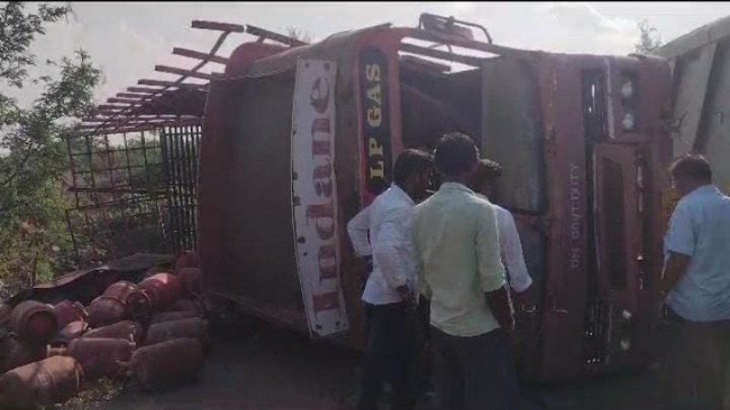 ನಂದಿನಿ ಲೇಔಟ್ನಲ್ಲಿ ಗ್ಯಾಸ್ ಸಿಲಿಂಡರ್ಗಳನ್ನು ಹೊತ್ತ ಲಾರಿ ಪಲ್ಟಿ !