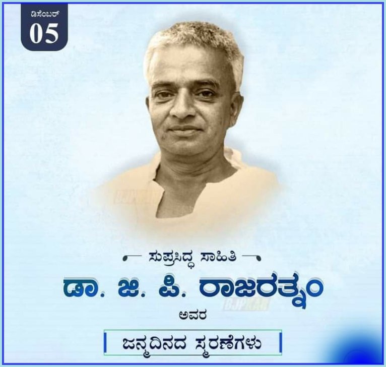 ಕನ್ನಡನಾಡು ಕಂಡ ಅಪ್ರತಿಮ ಕ್ರಿಯಾಶೀಲ ಕವಿ ,ಲೇಖಕ,ಗೀತರಚನೆಕಾರರಾದ ಜಿ.ಪಿ ರಾಜರತ್ನಮ್ ಅವರ ಜನುಮದಿನ. 1909ರಂದು ರಾಮನಗರದಲ್ಲಿ ಜನಿಸಿದರು .