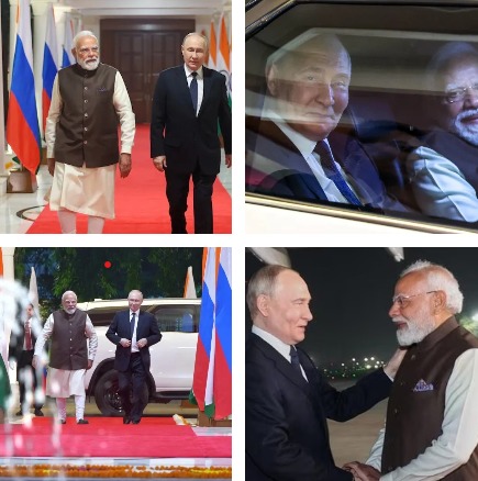 ನಿನ್ನೆ ಗುರುವಾರ ಸಂಜೆ ಏಳು ಗಂಟೆಯ ಸುಮಾರಿಗೆ ರಷ್ಯಾ ಅಧ್ಯಕ್ಷ ಪುಟಿನ್ ದೆಹಲಿ ಅಂತರಾಷ್ಟ್ರೀಯ ವಿಮಾನ ನಿಲ್ದಾಣಕ್ಕೆ ಬಂದಿಳಿದರು . ಪ್ರಧಾನಿ ನರೇಂದ್ರ ಮೋದಿ ಆತ್ಮೀಯ ಗೆಳೆಯನಿಗೆ ಅಪ್ಪುಗೆ ಹಾಕಿ ಭಾರತಕ್ಕೆ ಬರಮಾಡಿಕೊಂಡರು. ತದನಂತರ ವಿಶೇಷ ಕಾರ್ಯಕ್ರಮದಲ್ಲಿ ಭರತನಾಟ್ಯ ಪ್ರದರ್ಶನ ಕಂಡು ರಷ್ಯ ಅಧ್ಯಕ್ಷರು ಪುಳಕಿತರಾದರು.